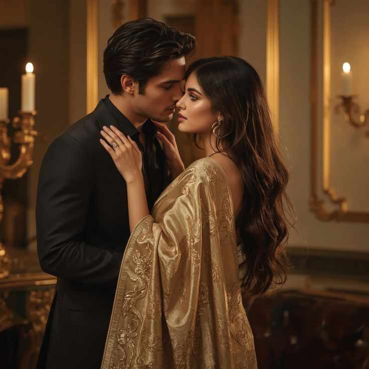 Two figures were laying on the curtains covered bed as their faint figures were busy in themselves. That bride was sharing an intimate moment with her husband. Their bare bodies were entangled with each other like magnets.